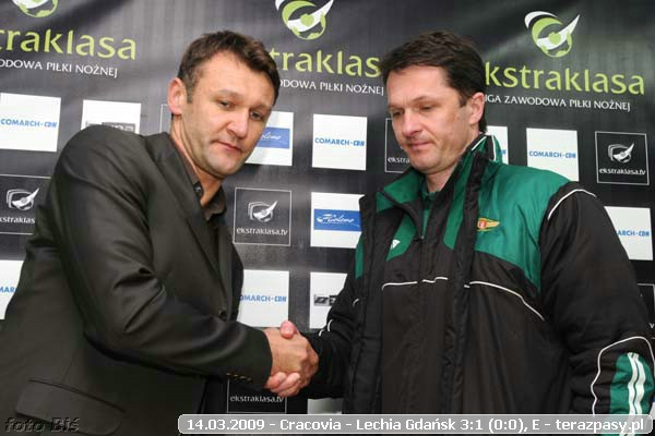 Liczyliśmy tutaj - przyznaję - co najmniej na remis. Niestety Cracovia w przekroju całego spotkania była zespołem lepszym i zasłużenie wygrała. (...) (wszystkie wypowiedzi z konferencja w zapisie mp3)
